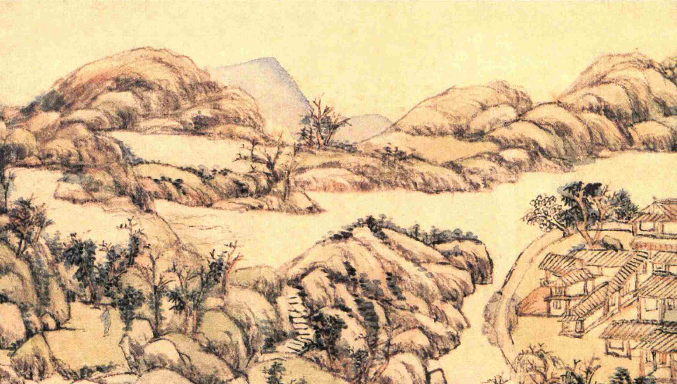 幼小的我,经常在那一带玩耍。小桥那边,有一个土坡,也算是山吧。小路上了山,不见了。晚间站在溪畔,总觉得山那边是极遥远的地方,隐约在树丛中的女生宿舍楼,也是虚无缥缈的。其实白天常和游伴跑过去玩,大学生们有时拉住我们的手,说:“你这黑眼睛的女孩子!你的眼睛好黑啊。”