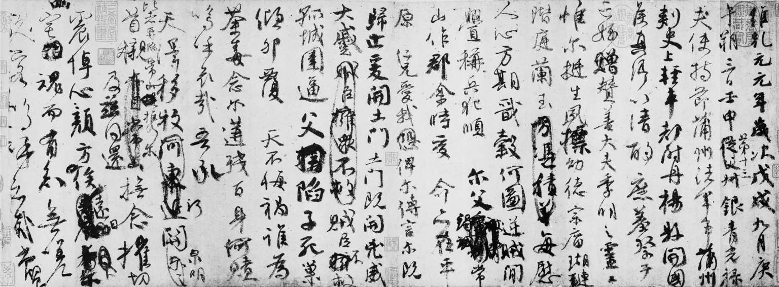 唐初,经济与文化繁荣昌盛,促进了书法艺术的发展,其中尤以真、草二体最为璀璨有成,草书既有继承,又有发展。孙过庭、贺知章等取法二王,善作今草,尤以小草精能;张旭、怀素虽受二王草法的影响,但又遥承东汉张芝草法,而以狂草鸣世,振奇千古。草书自颠、素变古,时出新意,是草书史上的又一崛起。