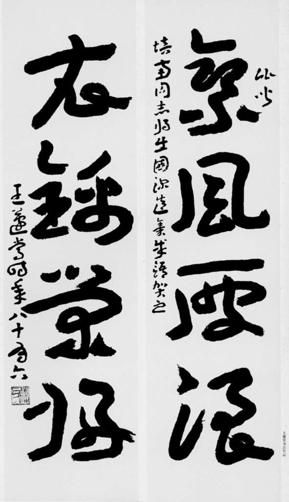 书画篆刻无不精妙,而于(书)篆、隶、正、草均熟中求生,刚健婀娜,平正煞辣,气势磅礴,不可名状,允推当代书法杰手。