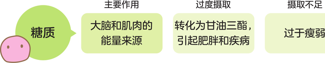 营养素是建立健康体魄、维持健康活动所必需的物质,糖质、蛋白质(第40页)、脂质(第50页)被称为“ 三大营养素 ”,加上维生素、矿物质(第54页)则被称为“ 五大营养素 ”。