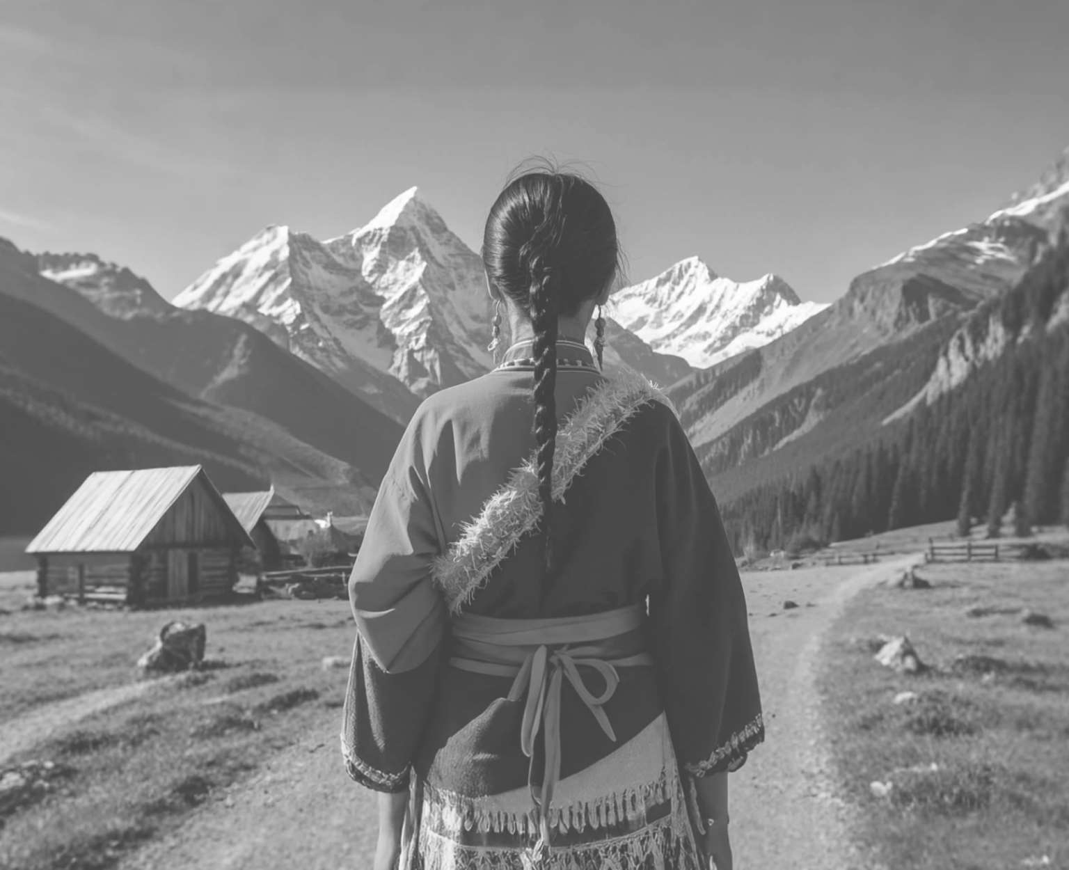 应该是灰马抖落一身覆雪,露出斑斓装饰的举动引起了我的兴趣,更应该是我跟它的缘分、它对我的召唤:来啊,来啊,这里有你的喜欢。我走过去站到了马跟前,但进入眼帘的却再也不是马了,是灯塔。一个21岁的小伙子眼里突然出现的灯塔应该是什么?不仅仅是姑娘,还有姑娘的美丽。她应该还是个少女,裹着紫红的头巾,穿着黑色的氆氇皮袍,面孔如同绝美的酥油花作品,刚刚从天女形象的模子中取出来,带着被想象过的姣好,安顿到了这里。她站在门内,门口摆着一张桌子,上面放了一个填满酥油的牛肚和一个方形的黑牛皮盘,牛皮盘上刀尖向内放着一把嵌有宝石的藏刀。我心说她不怕冷啊?这时候还开着门。