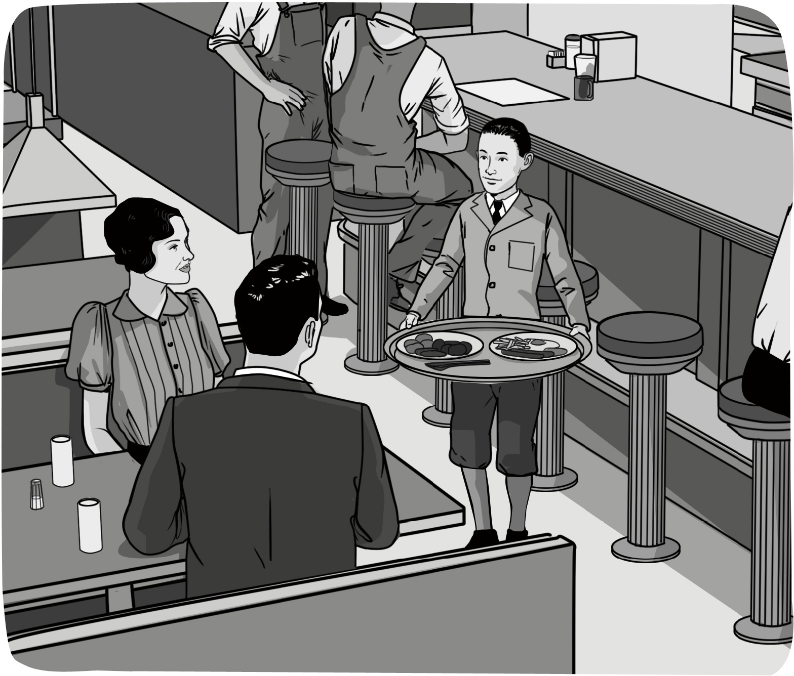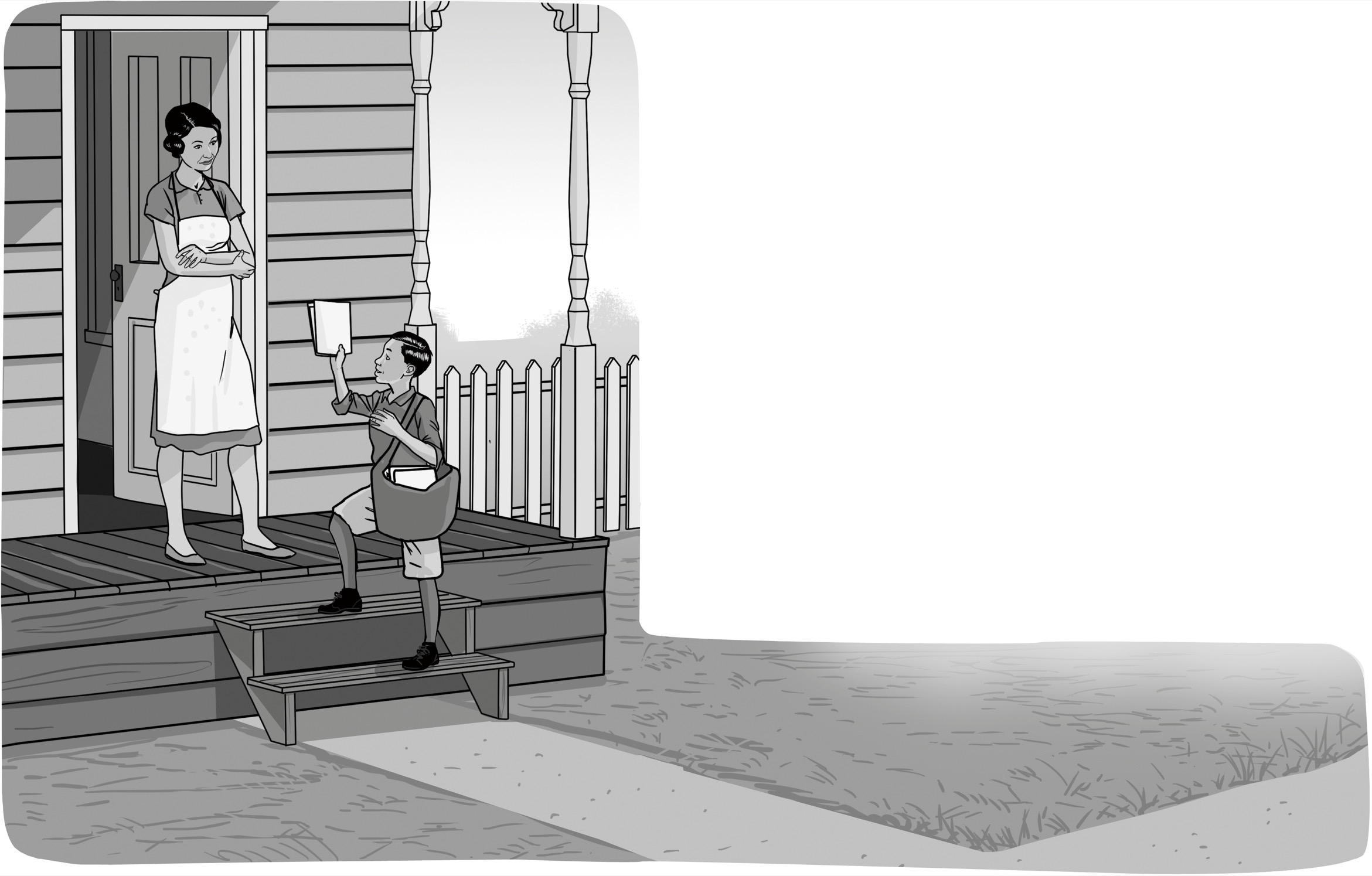 As Sam grew up, he kept selling. He had a newspaper route and was always adding new customers. He worked in a small store that sold a little bit of everything. He worked in restaurants, providing food and drinks to hungry visitors. Sam also took odd jobs, helping people around their yards or making deliveries.