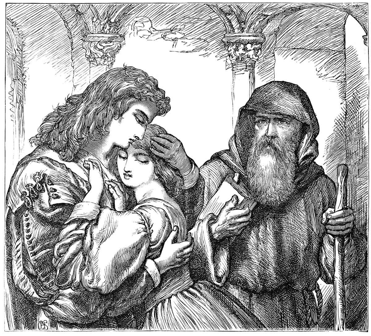 劳伦斯 来,跟我来,我们要把事情早点办好;因为在神圣的教会让你们结合以前,你们是不能在一起的。(同下)