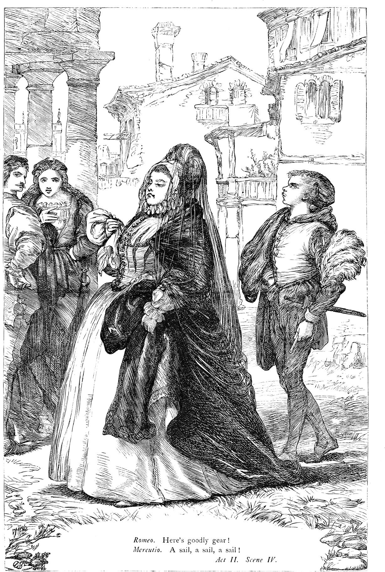 乳媪 对,说得好,“让他自甘堕落”,是这么说的吧?列位先生,你们有谁能告诉我年轻的罗密欧在什么地方?