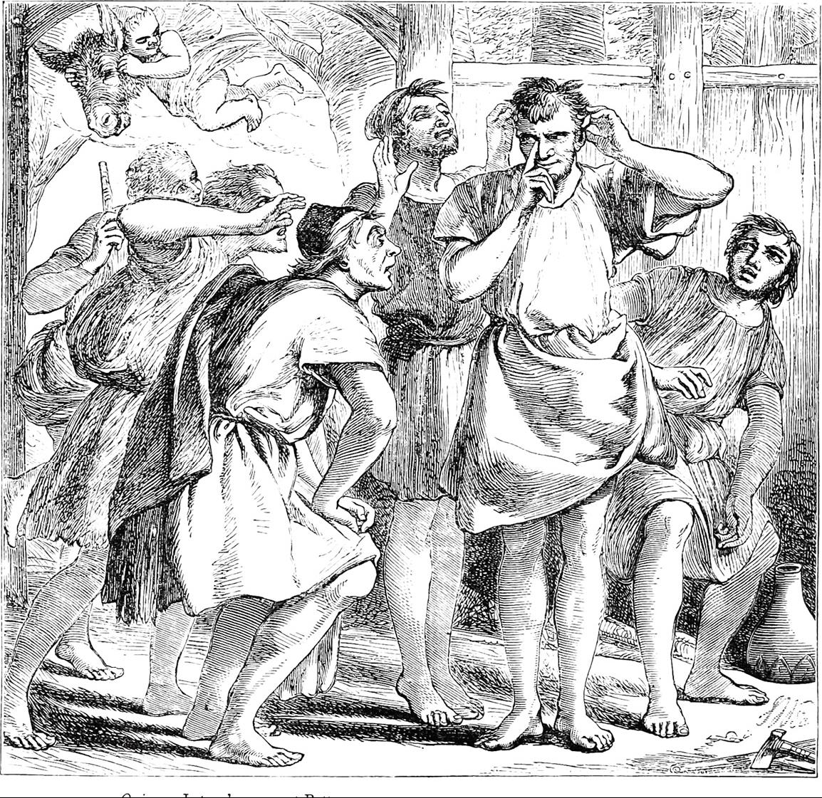 波顿 真的,来一堆刍秣吧;您要是有好的干麦秆,也可以给咱大嚼一顿。咱想,咱怪想吃那么一捆干草;好干草,美味的干草,什么也比不上它。