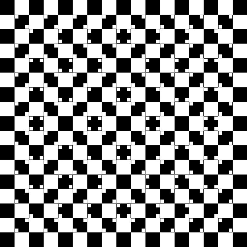 那么到底该怎么办呢?我的第一条建议:不要毫无理智地相信你的个人感觉和经验。个人感觉和经验不能成为你寻求真理的指南针。事实上,你的感觉不仅不准确,还经常容易迷惑你。你不相信?举一个简单的例子,下面这个棋盘完全是横平竖直的,我们却感觉它歪歪扭扭。这种情况下,如果仅仅根据你的感觉,那么失败早已注定。但是如果你习惯将自己的感觉和一个度量可靠的工具相结合,那么当你的感觉和该工具所描述的情况不符时,这个工具就能帮助你,得出严谨的结论也就不难了。