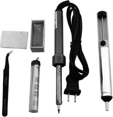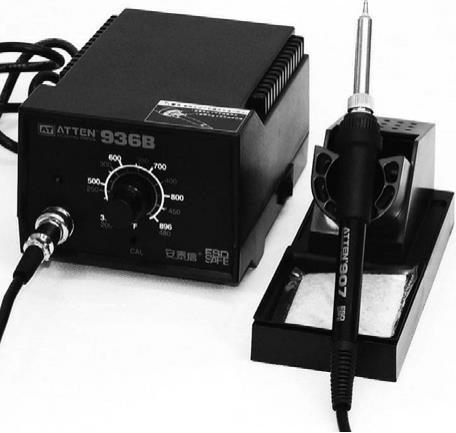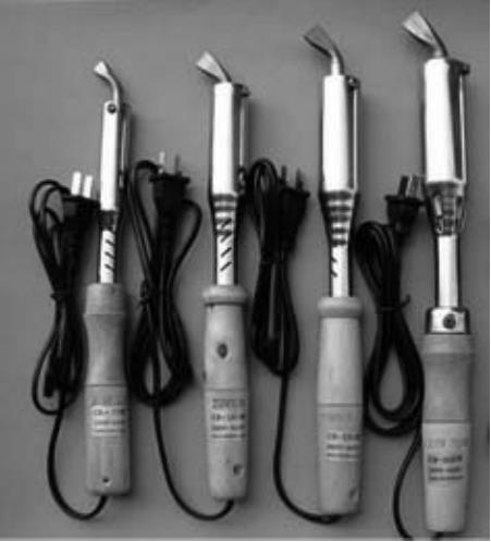 内热式电烙铁的规格有20W、30W、35W、50W等。20W的电烙铁温度可达350℃左右。电烙铁的功率越大,烙铁头的温度越高。焊接集成电路、一般小型元器件选用20W内热式电烙铁即可。使用的电烙铁功率过大,则容易损坏元器件。通常二极管、晶体管等半导体元器件当温度超过200℃就会烧毁。温度过高也会导致印制电路板上的铜箔线脱落。电烙铁的功率太小,不能使被焊接物充分加热而导致焊点不光滑、不牢固,易产生虚焊。