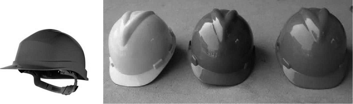 在举升新能源(纯电动)汽车,进行拆卸、安装动力电池总成时,应戴绝缘安全帽(图2-1-30),以保护头部安全。新能源汽车维修用绝缘安全帽与电力行业所用的一致,使用前应检查其是否破损,固定装置是否正常。