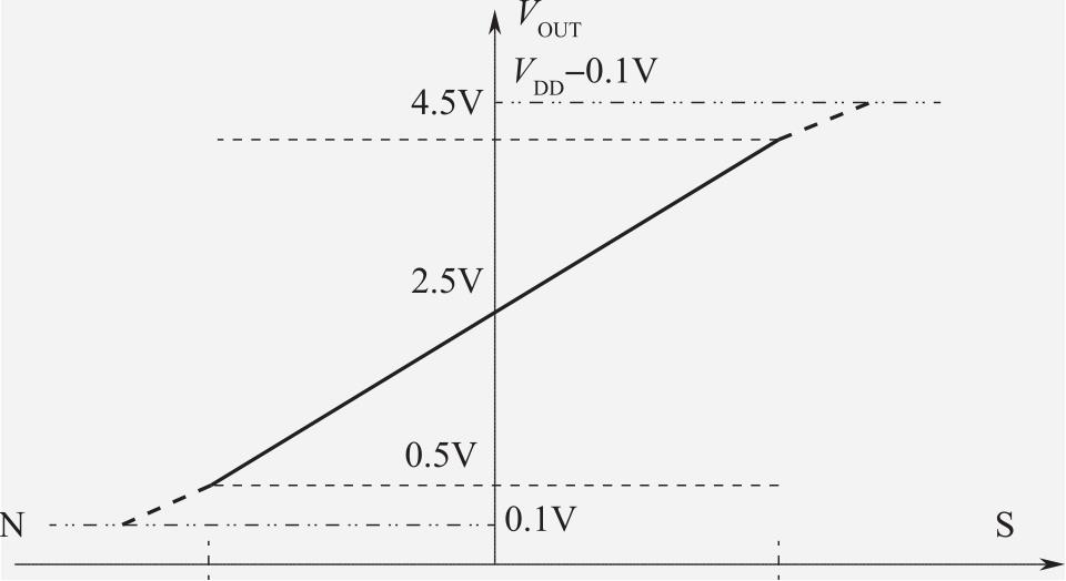 图1-1-20 宝马汽车上的线性霍尔传感器输出特性