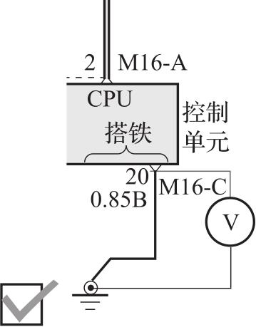 在排查线路接触不良故障时,如果使用万用表或试灯进行供电测量,往往万用表有12V电压读数,试灯也能点亮,但系统并不能正常工作。由于数字万用表电压档的测量精度高于电阻档,通常遇到这种情形应采用“电压降”测量的方法。例如,图1-2-9所示控制单元的20号针脚搭铁(接地),假设搭铁点接触不良,即在搭铁点处有等效电阻,该电阻高于正常搭铁良好时的电阻值。这个等效电阻无法用电阻档直接测量出来,因为等效电阻只有在电路导通时才表现出来。正确做法是使用万用表测量电压,即测量20号针脚与搭铁之间的电压降。如果等效电阻大,电流一定,则该电阻上的电压降就会变大。因此,测量电压降可以识别出电路中是否存在接触不良(高电阻)。