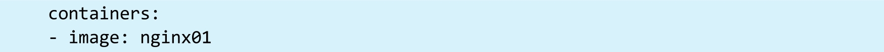 ● 第四个成员spec是一个Object,用来指定Pod中的容器信息,它有一个成员containers,因为Pod可以运行多个容器,所以containers是一个数组,数组中的每个元素就是一个容器的信息,目前container数组中只有1个元素,说明该Pod只运行一个容器,该元素有两个成员,name用来指定容器的名字,image用来指定容器的镜像名。特别注意:image的首字母一定要和name的首字母上下对齐。