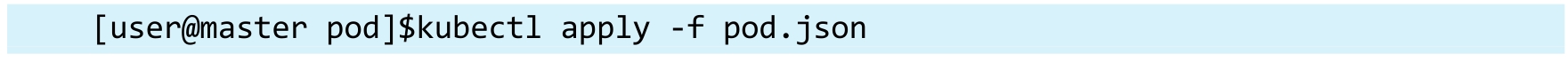 创建Pod的命令如下,其中apply是选项,指定使用配置文件来创建resource;-f后面跟配置文件名;pod.json是Pod的JSON配置文件名。