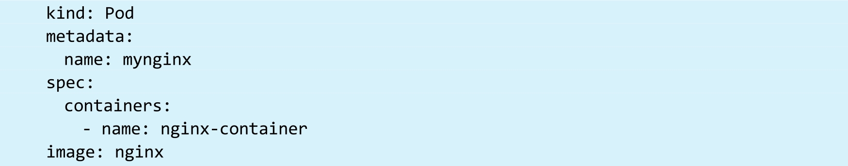 ● 第三个成员metadata是一个Object,用来指定Pod的标识,它有一个成员name,其值是mynginx。