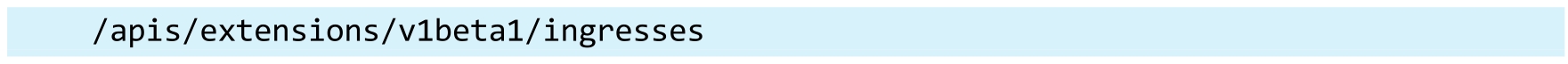 Kubernetes首先使用API group对resource分类,API group是一个字符串,它会写入resource的REST路径。一个典型的resource的REST路径如下所示,其中,apis是所有API的固有信息;extensions则是API group;v1beta1是API版本;ingresses是resource的名字。