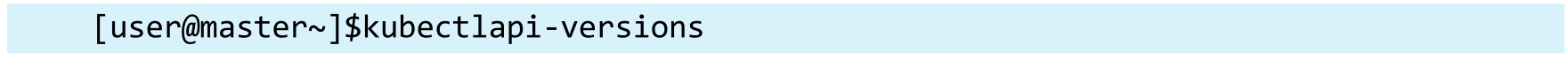 API group(GROUP)和API version(VERSION)都是resource的REST路径的重要信息,它们两者的组合:GROUP/VERSION,称之为apiVersion。可以使用以下命令来查看Kubernetes所支持的apiVersion。