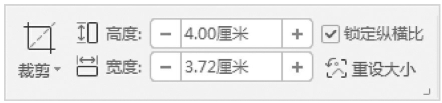 3)使图片处于选中的状态,在“图片工具”选项卡中,保持“锁定纵横比”复选框的选中,设置“高度”微调框的值为“4.00厘米”,设置“宽度”微调框的值为“3.72厘米”,如图1-17所示。之后根据效果图将图片调整到艺术字的左下方。