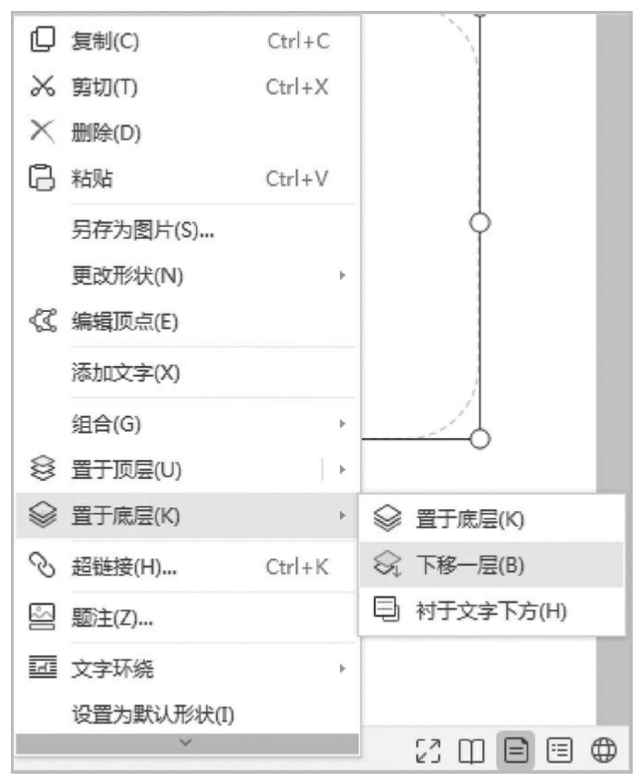 5)为了不遮挡文字,右击虚线圆角矩形,从弹出的快捷菜单中选择“置于底层”→“下移一层”命令,如图1-24所示。