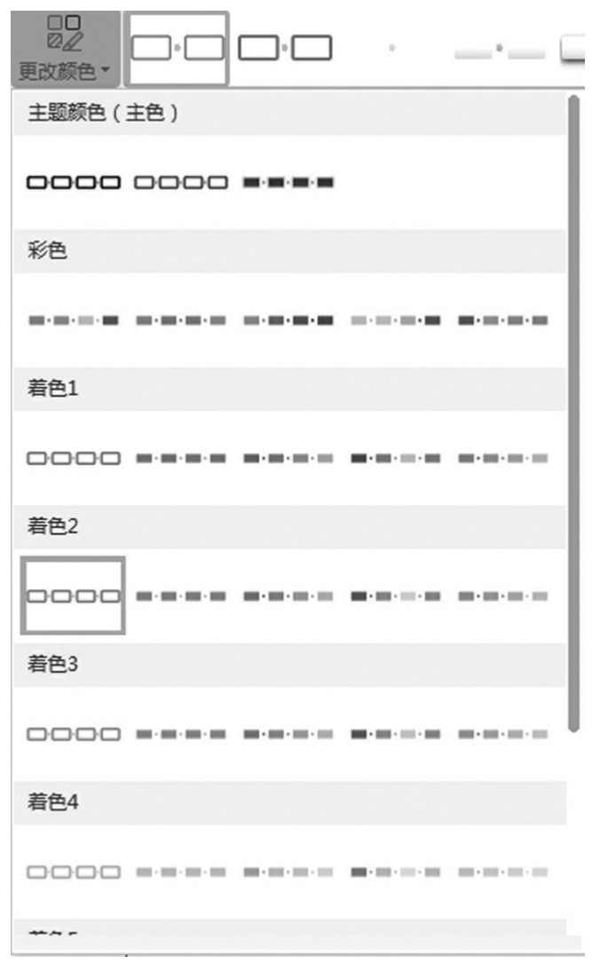 7)切换到“设计”选项卡,单击“更改颜色”按钮,从下拉列表中选择“着色2”中的第一个选项,如图1-31所示,更改智能图形的颜色。