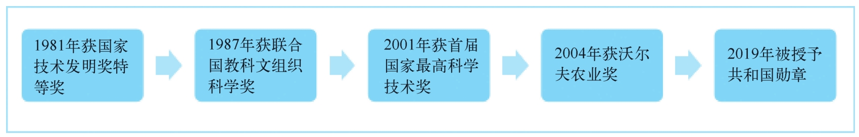 袁隆平院士一生中获得了多项荣誉奖项与成就,由于篇幅有限,小李利用WPS文字的智能图形展示了袁院士的几个重要荣誉奖项。具体操作如下。