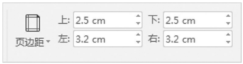 2)将“页边距”中的“上”“下”微调框的值设置为“2.5cm”,将“左”“右”微调框的值设置为“3.2cm”,如图1-4所示。