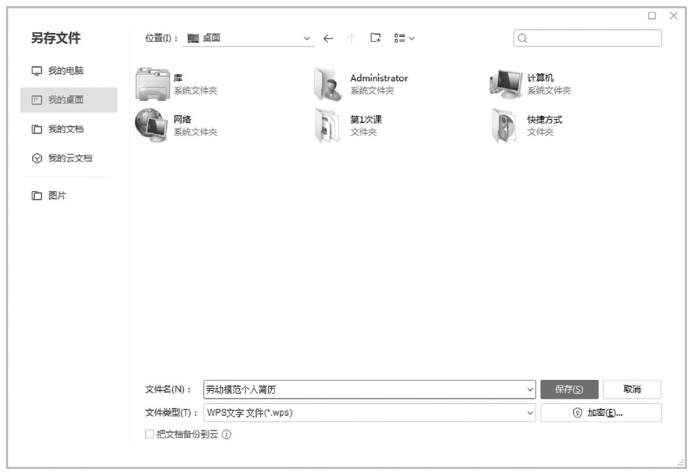 单击快速访问工具栏中的“保存”按钮,打开“另存文件”对话框,设置对话框中的保存路径与文件名,如图1-33所示。单击“保存”按钮,完成文档的保存。