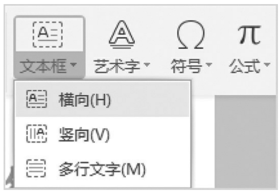 1)切换到“插入”选项卡,单击“文本框”下拉按钮,在下拉列表中选择“横向”选项,如图1-18所示。