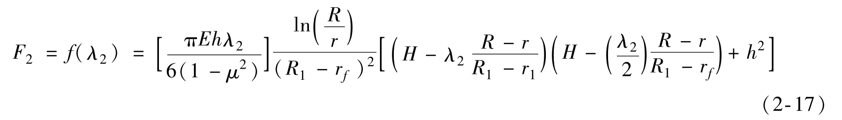 将式(2-15)和式(2-16)代入式(2-14),即可以求得 F 2 和 λ 2 的关系式为