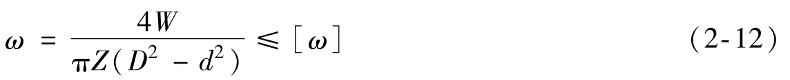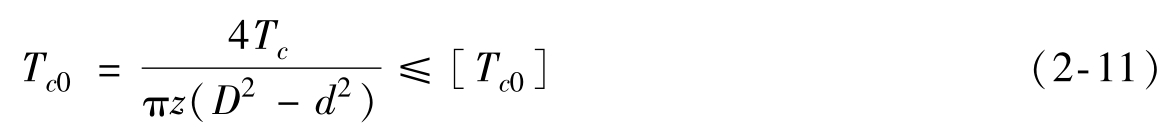 式中, T c 0 为单位摩擦面积传递的转矩(N·m/mm 2 );[ T c 0 ]为其允许值(N·m/mm 2 ),按表2-5进行选取。