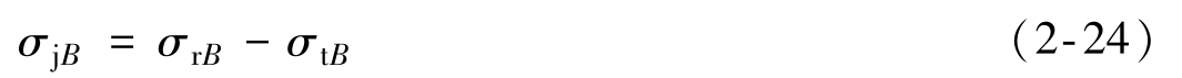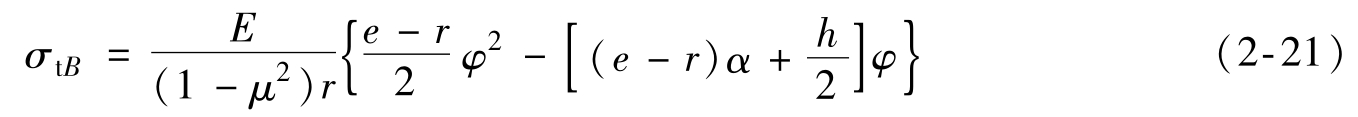 分析表明, B 点的应力值最高,因此通常只计算 B 点的应力来校核碟簧的强度。将 B 点坐标 x ≈-( e-r )和 y = h/ 2代入式(2-19),可得 B 点的应力 σ t B 为