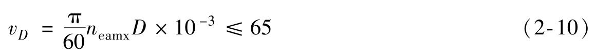 1)摩擦片外径 D (mm)的选取应保证它的最大圆周速度 v D 不超过65~70m/s,即