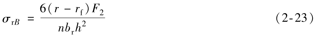 当离合器彻底分离时,膜片弹簧子午断面的实际转角 φ f ≥ φ p ,计算 σ t B , φ 应该取 φ p ,如果 φ f < φ p 则 φ 应该取 φ f ,在分离轴承推力 F 2 的作用下, B 点还受弯曲应力 σ r B ,其值为