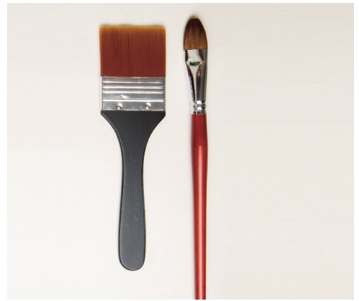 水粉画笔、大号笔刷可以与水彩或水粉颜料使用。建议选择笔头不过于纤细、笔杆较粗的笔刷。孩子在启蒙阶段往往控笔能力较弱,纤细的笔头和笔杆无疑会增加绘画难度。注意每次使用完后要及时清洗干净,以防出现下次使用时混色或刷毛打结等问题。水粉画笔和排刷一般用于水彩上色或水粉上色,排刷偶尔也用于给画刷排水。