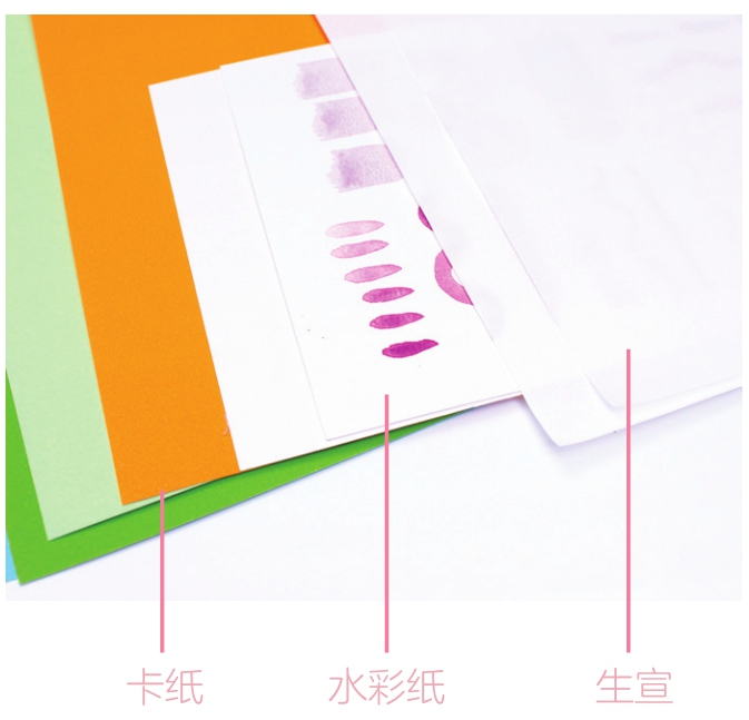 因为孩子初期往往会执笔过于用力,建议家长选择200g左右中等厚度的纸张。过薄的纸张在经历了水彩或水粉厚涂之后容易发生变形和透底。