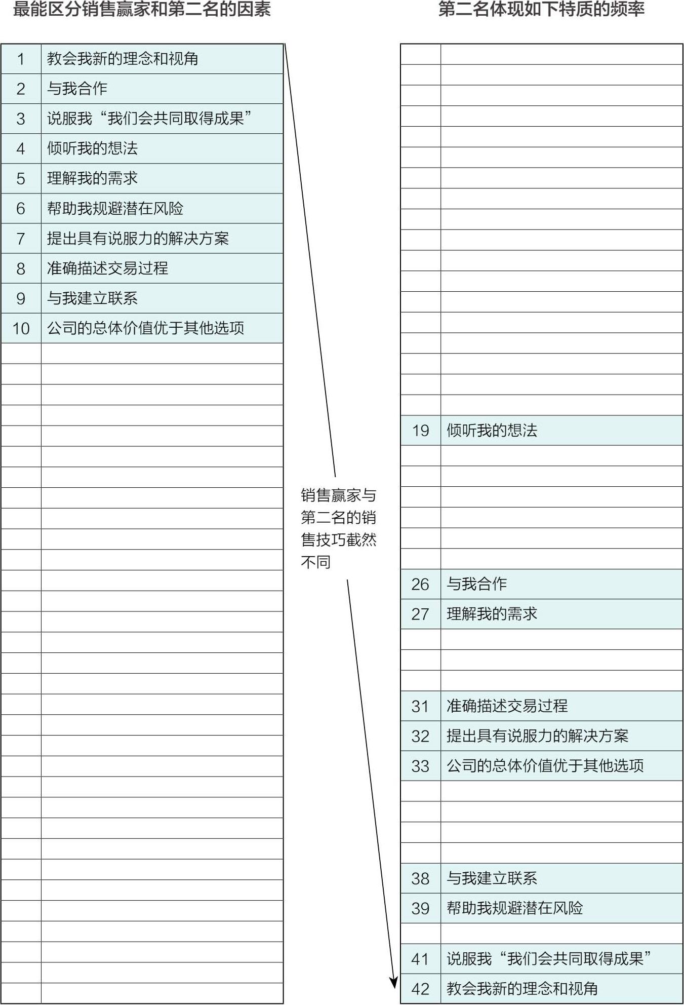 销售赢家能展现出一系列特定的行为,并且收获了成效,而第二名没有做到这些。