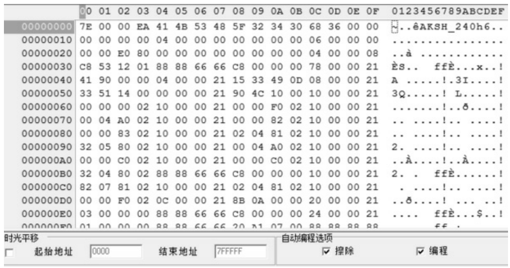 在具体操作时,首先使用芯片夹将编程器与Flash的各个引脚对准,然后上电,此时编程器以MCU的身份与Flash芯片进行通信。它通过总线发送读取内存段的指令,进而将Flash芯片内存空间中的数据读出。编程器固件提取如图3-64所示。