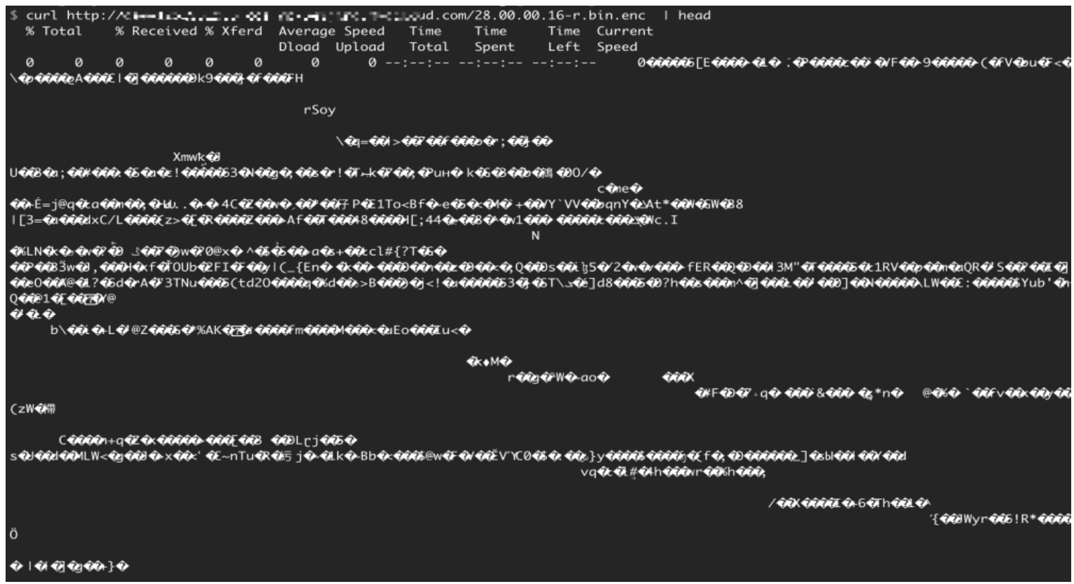 (4)此时返回的URL的值为一个链接,使用浏览器或者curl命令访问此链接,即可获取设备固件更新包的raw数据,如图3-60所示。