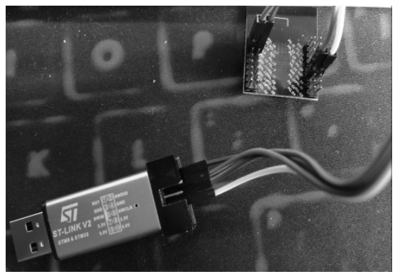 (1)将SWD接口提取工具引脚与蓝牙设备引脚连接,如图3-85所示。