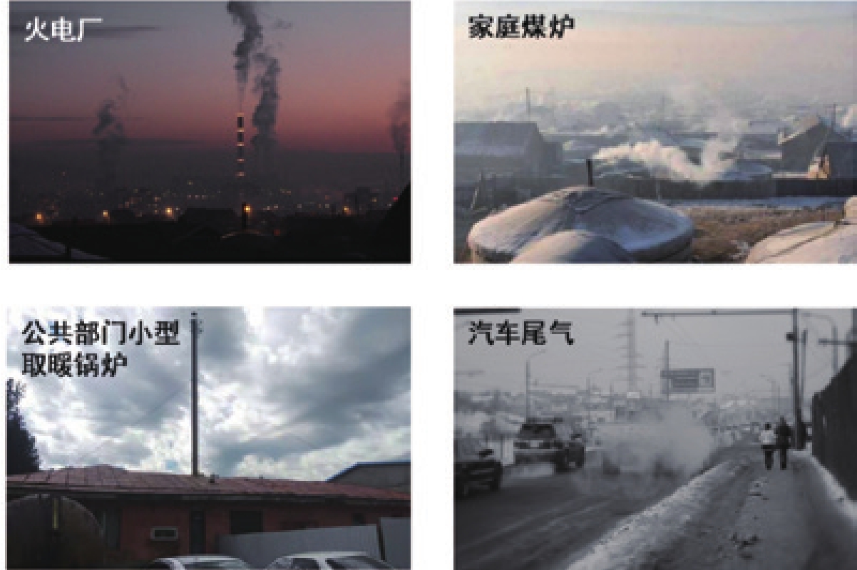 比燃煤发电更多的污染来源是用于取暖的锅炉从烟囱排出的烟尘(图2)。这些锅炉包括用于社区和公用事业单位集中供暖的链式锅炉和手烧炉,也包括在每个家庭内用于取暖的传统锅炉。低温锅炉燃煤取暖产生了80%的空气污染物,其中60%的污染物来自于居住在棚户区的乌兰巴托居民,这些居民主要靠散烧煤或者木材取暖。2011年12月6日发布的乌兰巴托市空气质量报告显示,该市北部棚户区粉尘和二氧化硫监测值分别超过标准含量的8倍和2.6倍。
