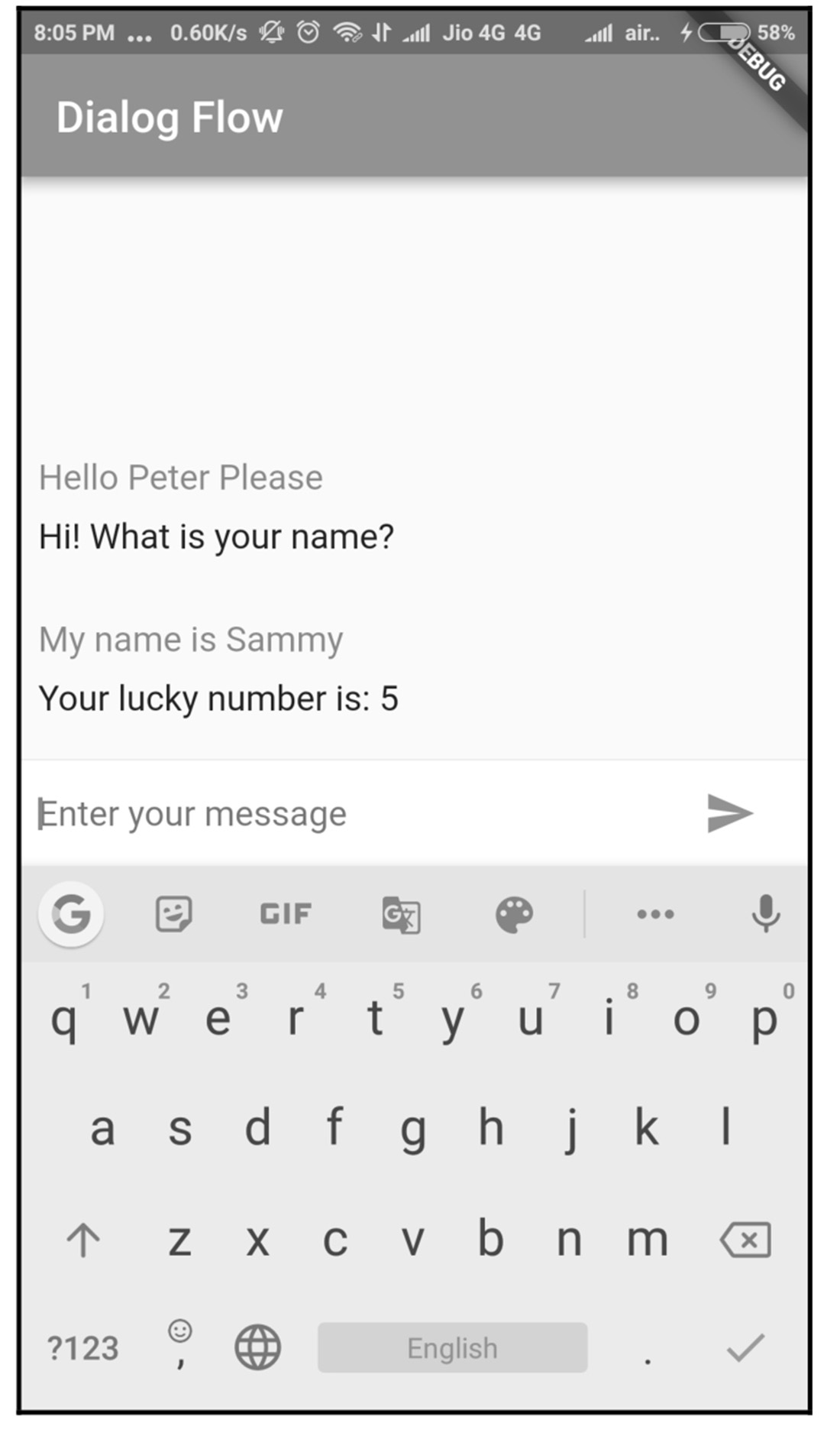 我们已经为应用程序创建了一个非常基本的用户界面,现在的任务就是将Dialogflow代理与应用程序集成,以便代理能实时响应用户输入的文本。