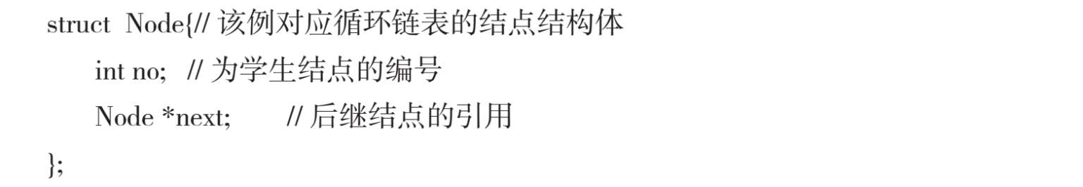 代码首先定义循环链表的结点,为方便起见,结点中只保存编号: