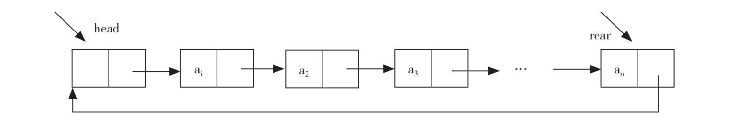 对于单链表而言,最后一个结点的地址域是空,如果表中最后一个结点的指针域指向头结点,整个链表形成一个环,就构成了单循环链表,如图2.19所示。