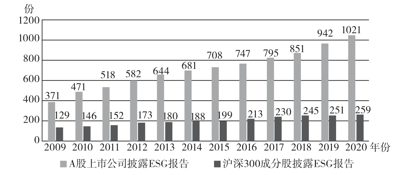 图3-2 2009—2020年A股ESG报告发布数量统计