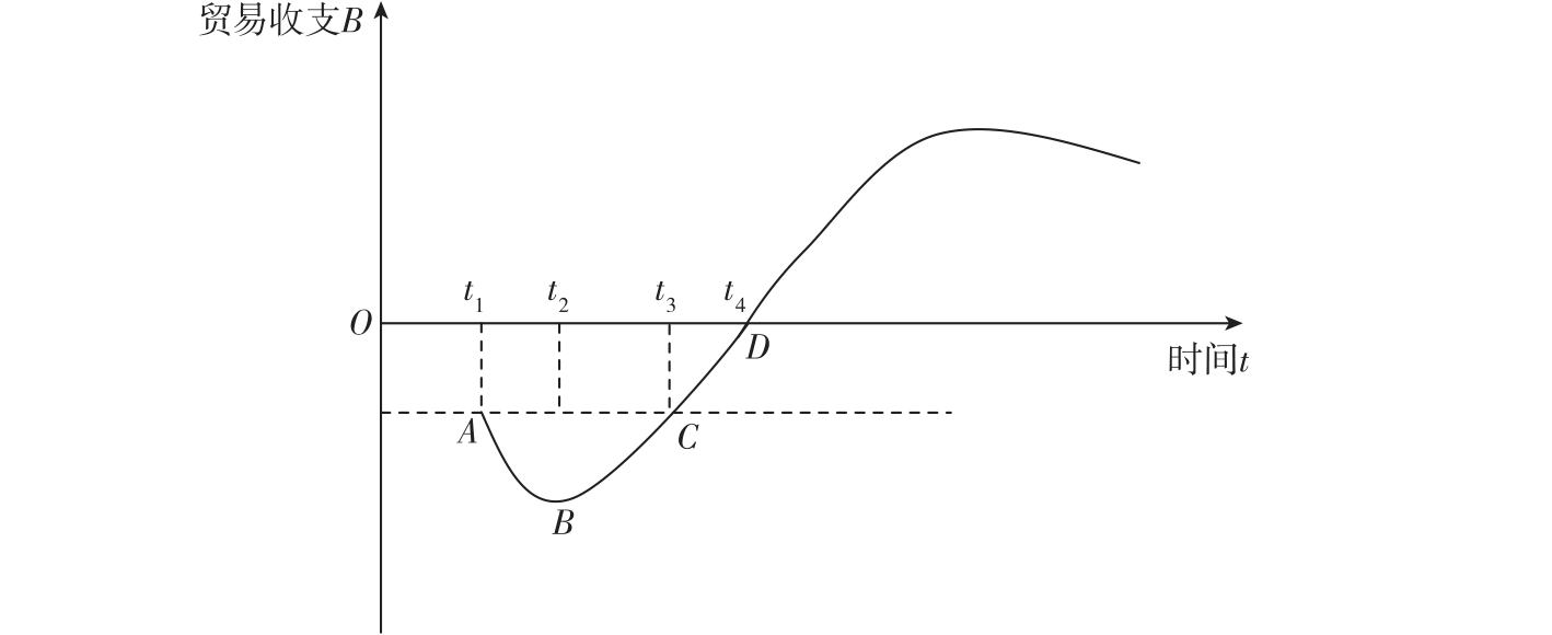 图1-1中的时滞反应可以分为三个阶段。(1)货币合同阶段。在此阶段,由于贬值前签订的合同仍然有效,故贬值并不能立即使贸易收支发生改变。(2)传导阶段。①认识时滞。本币贬值后,进口商不会立即得知出口商品价格下降的消息。②决策时滞。进出口商在认识到货币贬值带来的商品价格变动后,需要一定的时间来判断价格变化的重要性,进而做出改变进出口商品数量的决定。③生产时滞。面对出口商品需求的增加,国内生产商筹集闲置资源扩大生产需要一定的时间。(3)数量调控阶段。出口供给和进口需求进行相应调整后,进出口商品的数量变动幅度超过了进出口商品的价格变动幅度,贸易收支开始慢慢改善。