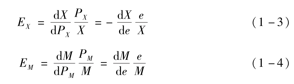 式中, X 表示出口商品的数量; P X 表示出口商品的外币价格; M 表示进口商品的数量; P M 表示进口商品的本币价格。