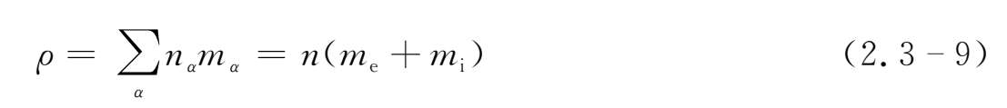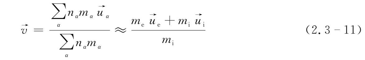 乘(2.3-8b)式,然后相减,并考虑上述条件,则单流体模型下的宏观物理量与二流体模型下相应物理量的关系为
