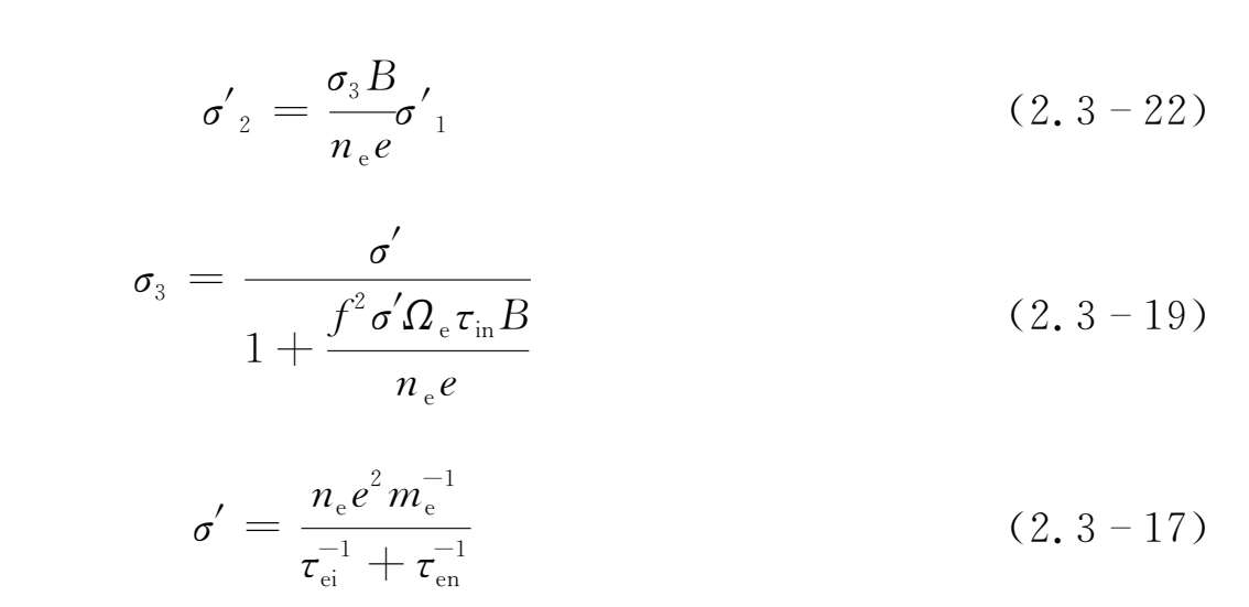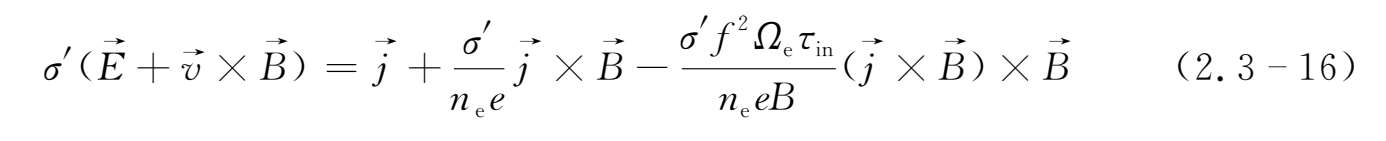 在许多实际应用中,当考虑问题的特征时间远大于粒子在相继两次碰撞间即T≫max{τ ei ,τ en ,τ in }时,部分电离气体中的广义欧姆定律可简化为