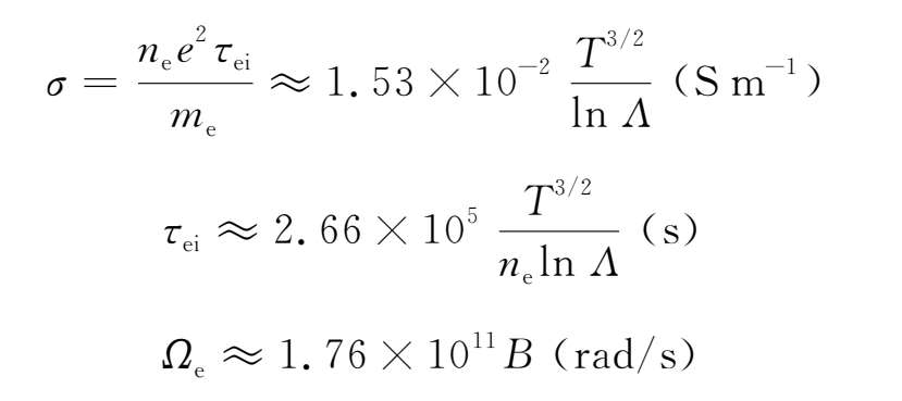 其中lnΛ为库仑对数,T为温度,n e 为电子数密度,B为磁场强度。