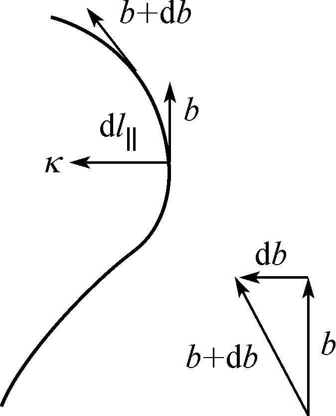 为曲率半径。当磁力线是一根直线时,其上各处的曲率κ均为零,此时磁张力也处处为零,和磁场的强弱无关。当磁力线弯曲时,例如从图2.10中的