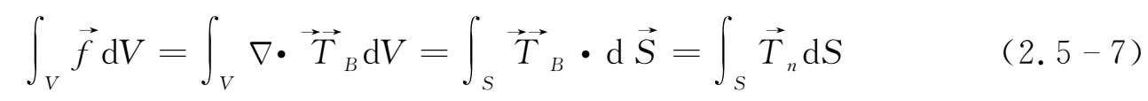 S为包围体积V的闭合曲面,(2.5-7)式表明,作用在体积为V的导电流体上的磁体积力,在作用效果上可被看作作用在包围体积V的封闭曲面S上的面力,其磁应力由(2.5-6)式确定。