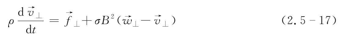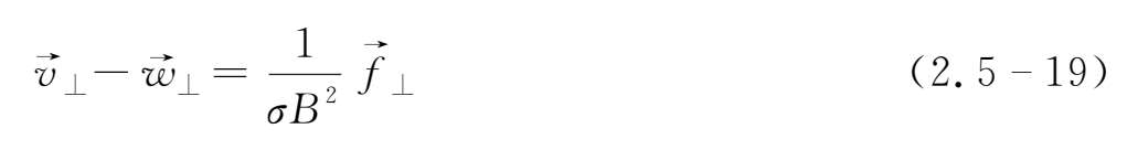 如(2.5-12)式所示一样,(2.5-18)式也是磁力线运动速度。由(2.5-17)式可知流体原来的流动以(2.5-16)式所给的弛豫时间趋向于使流体相对于磁力线的横向运动达到
